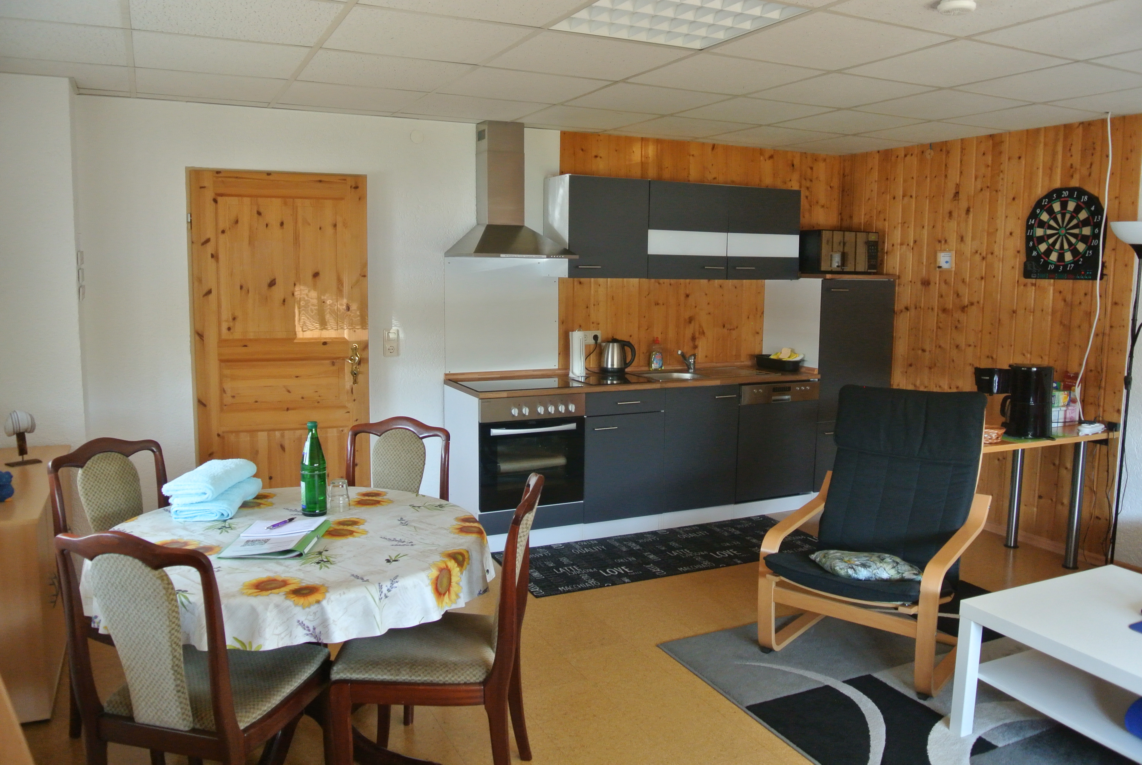 Die Wohnung verfügt über einen separaten Eingang und besteht aus einem großen Wohn-Esszimmer mit Küchenzeile, einem Schlafzimmer sowie einem Bad mit WC und Dusche. Das 25 m² große Wohnzimmer ist mit einer Bettcouch ausgestattet. Stellplatz für Ihr Fahrzeug ist vorhanden.